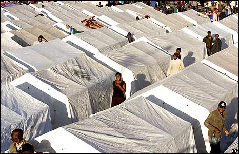 Tent city set up outside a police station in Johannesburg for those who have fled their homes but have yet to flee the country
